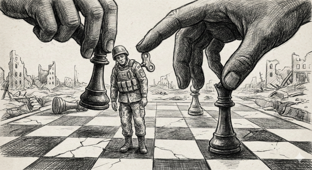 우리는 지금 ‘인스턴트 가공국가’가 강대국의 체스판 위에서 어떻게 소모품으로 쓰이는지 목격하고 있습니다. 대한민국은 이 비극에서 무엇을 배워야 합니까? 남의 힘에 기댄 안보는 결국 남의 이익을 위해 내 자식들을 사지로 내모는 결과로 돌아온다는 사실을 잊어서는 안 됩니다.