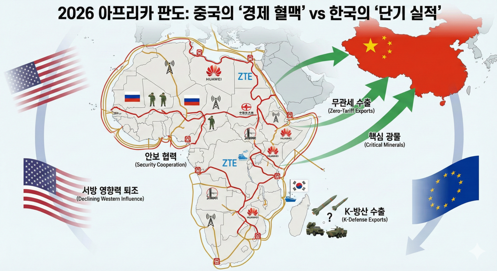 부제: 아프리카 53개국 무관세 선언이 던지는 충격… 100년의 인프라와 1년의 실적 차이 [개요] 2026년 2월, 세계 지도는 다시 그려지고 있다. 중국이 아프리카 53개국에 대한 전면 무관세를 선언하며 대륙 전체를 자신의…