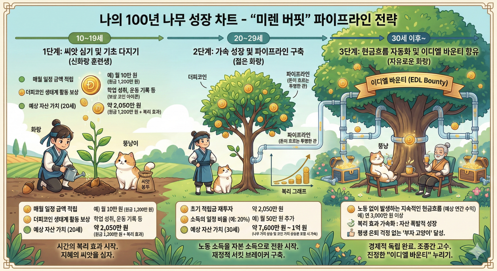 젊은 신화랑들이 10대부터 구축해야 할 [미렌 버핏(Mi-ren Buffett) 전략: 파이프라인 구축 모델]을 정량적 수치 데이터와 함께 시뮬레이션해본 결과입니다. 1. 핵심 역량: 재정 관리의 3대 서킷 브레이커 젊은 화랑들이 기체(인생)를 보호하기…