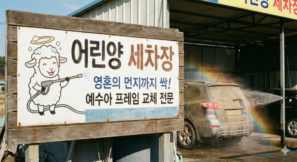 오늘 점심 먹기 전, 딱 1분만 눈을 감고 외쳐보자. “사장님! 제 영혼, 어린양 세차장에 입고합니다! 깨끗하게 닦아주세요!”