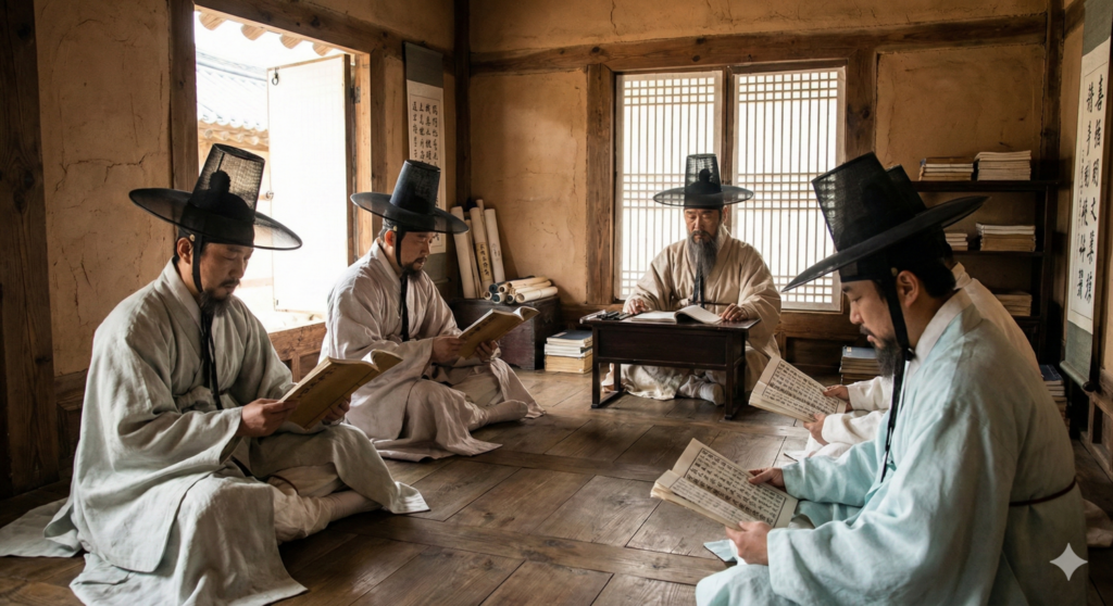 - 동양의 정체, ‘읽지 못하는 도(道)’: 동시대 조선은 성리학의 전성기였습니다. 고결한 철학이었으나, 그것은 한자(漢字)라는 거대한 성벽 안에 갇힌 ‘양반들만의 리그’였습니다. 세종이 한글을 창제한 지 150년이 넘었음에도, 국가 운영체제인 사서오경은 여전히 민초들에게는 ‘그림의 떡’이었습니다.