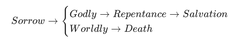 - 세상의 근심 (Worldly Sorrow): * 이것은 얼룩을 지울 생각은 하지 않고, 얼룩진 옷을 입고 있는 자신을 비난하거나 숨기려고만 하는 ‘독성 스트레스‘입니다.